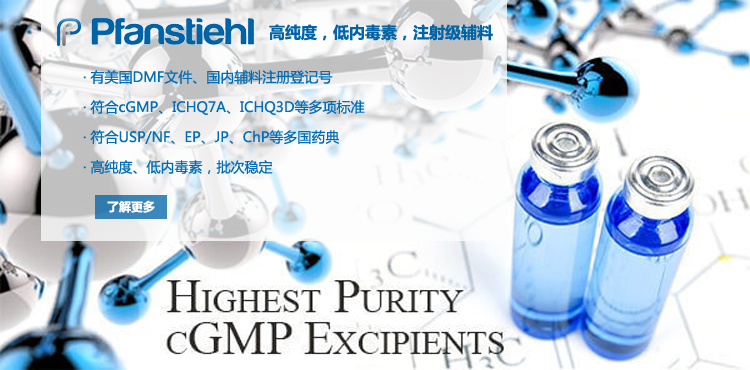 “熱烈祝賀Pfanstiehl的注射級甘氨酸Glycine(G-140)喜獲CDE登記號F20250000403, 這是Pfanstiehl產品獲得的第18個CDE登記號!”甘氨酸在醫藥輔料制劑中應用廣泛,, 可作為緩沖劑,增溶劑,穩定劑等,具有諸多優勢。Pfanstiehl秉承一貫高品質理念,為滿足全球生物制藥行業對于高品質甘氨酸的需求,隆重推出的注射級甘氨酸Glycine (G-140), 具有超高純度,超低內毒素,超低金屬殘留的特點,單獨檢測29種金屬離子,并且新增DNA,RNA,DNA酶,RNA酶和脂肪酶,亞硝酸鹽等多項質量指標的檢測,符合多國藥典規定(USP, EP, BP, JPE, ChP),可用于生物治療性藥物和疫苗的生產。產品信息:· 產品名稱:Glycine, High Purity, Low Endotoxin, Low Metals, USP, EP, BP, JPE, ChP (G-140)· 中文名稱:甘氨酸· 分子式:C2H5NO2· 分子量:75.07 g / mol· CAS號:56-40-6· 產品貨號:G-140產品特點: · 超高純度,超低內毒素,超低微生物含量,超低金屬雜質殘留· 質量指標新增DNA,RNA,DNA酶,RNA酶,脂肪酶和亞硝酸鹽檢測· 符合多國藥典:USP, EP, BP, JPE, ChP· 符合ICH Q3D標準· 符合GMP標準· 已獲DMF和CDE登記號 產品應用:· 緩沖劑· 穩定劑· 增溶劑如果您對Pfanstiehl注射級別Glycine G-140感興趣,歡迎聯系Pfanstiehl 中國區代理商北京西美杰科技有限公司獲得如下詳細的產品概況說明文件和測試樣品。Pfanstiehl Inc.最新產品系列如下,歡迎聯系北京西美杰科技有限公司獲取100g裝免費樣品。北京西美杰科技有限公司為Pfanstiehl中國代理,為客戶提供完善的技術支持與售后服務。歡迎撥打西美杰客服電話400-050-4006或者登陸網站www_xmjsci_com.51caipu.com.cn了解更多信息。 更多>